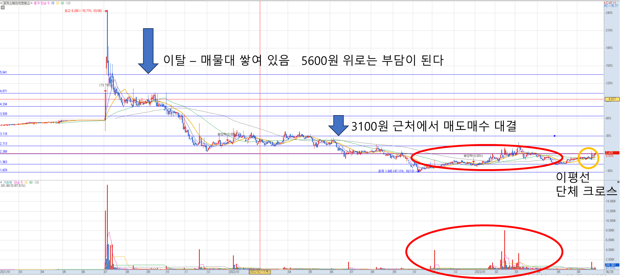- 2023년 6월에 들어 이평선이 단체로 크로스 되었습니다.