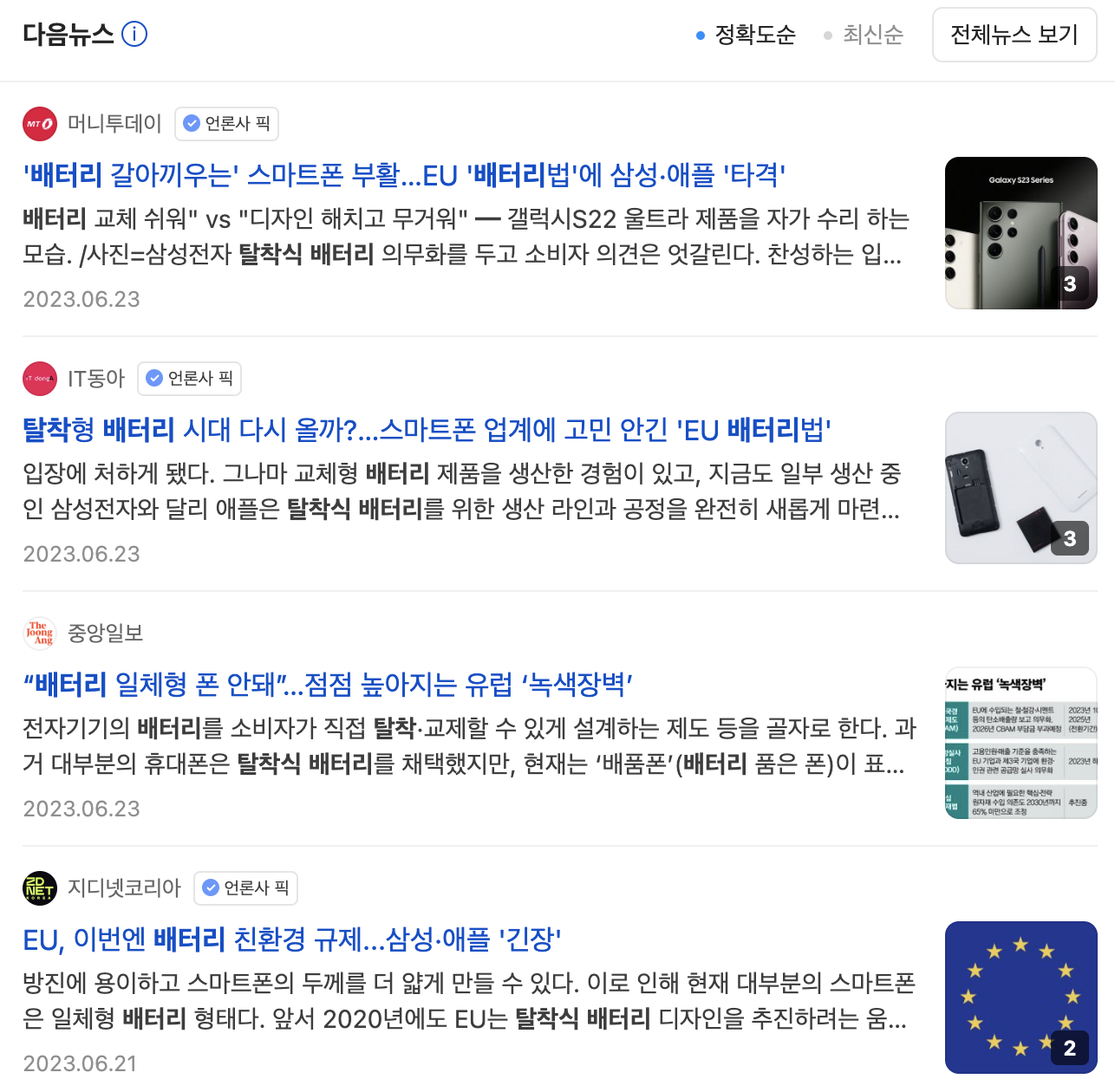 2023년 6월 14일 유럽연합(EU) 의회가 배터리 탈부착 의무화 법안을 통과시켰습니다.