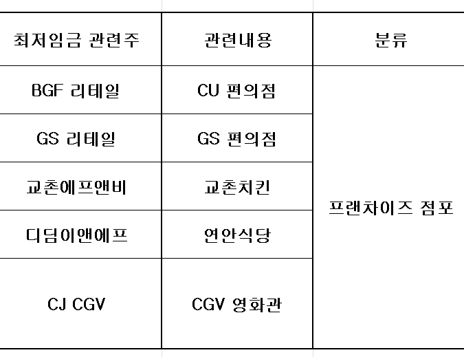 점포를 늘려가야 이익이 창출되는 기업들이 어느 정도는 영향을 받을 것으로 보입니다. 점주의 이익이 줄어들기 때문에 점포의 수를 늘려나가기가 어려워질것으로 예상됩니다.