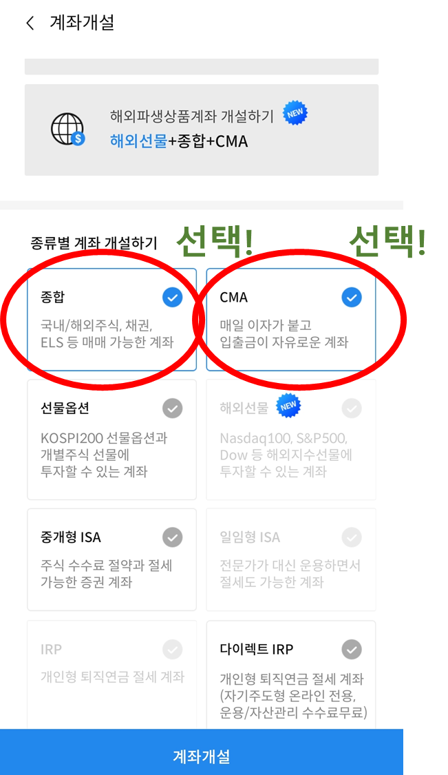 종합 계좌만 있어도 주식 거래가 가능하지만 거래를 쉬는 동안에는 CMA 계좌에 넣고 이자를 받는 것이 더 좋기 때문에 보통 둘을 함께 개설하는 것이 일반적입니다.