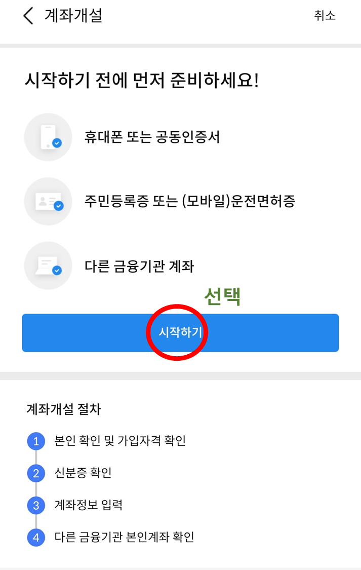 안내/계좌개설 - 계좌개설/인증 - 계좌개설을 눌러줍니다.