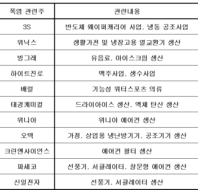 폭염 관련주, 더위 관련주