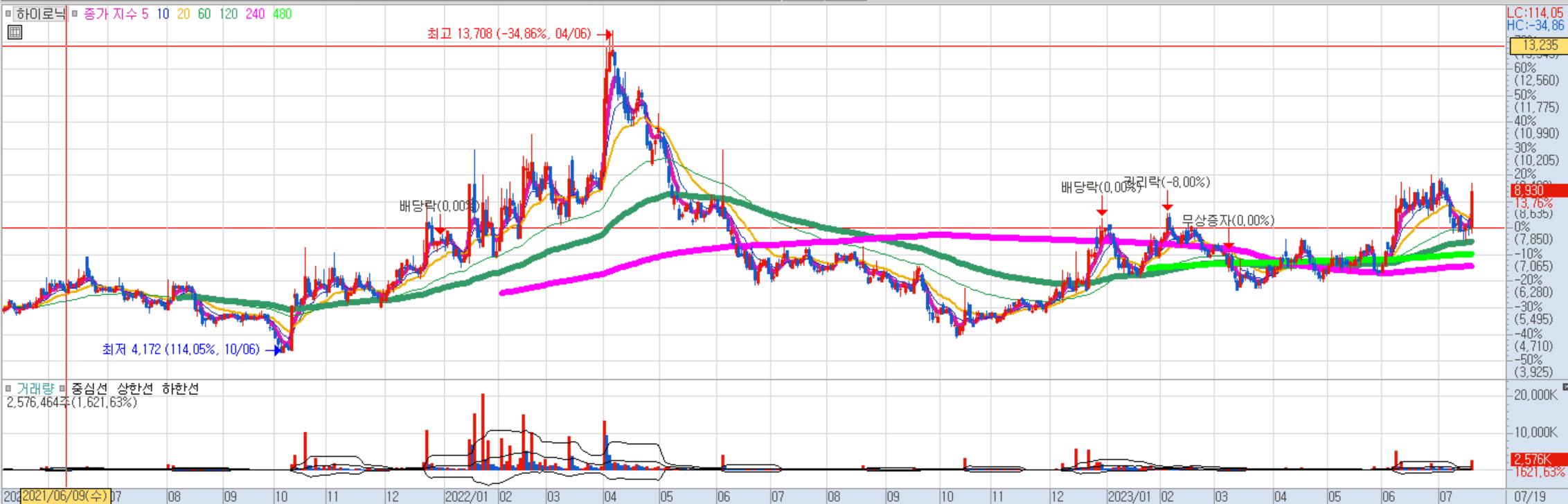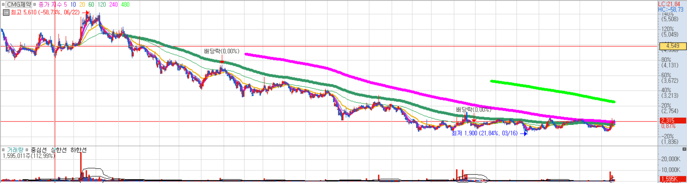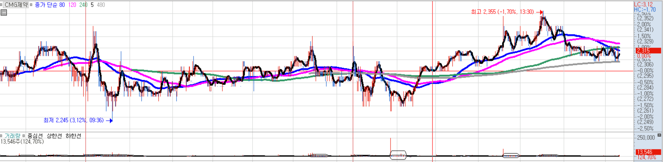 2270원~2350원 분할매수, 종가상 5일선 이탈시 손익절 후 재진입. 4000원라인까지 매물대가 약한 편.