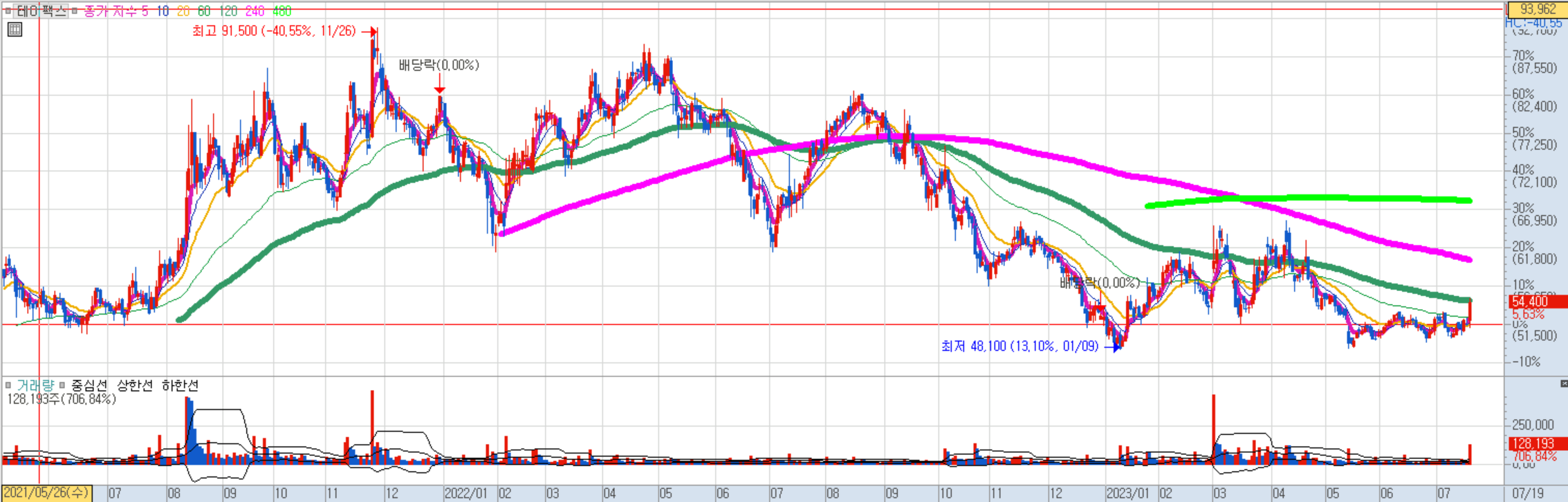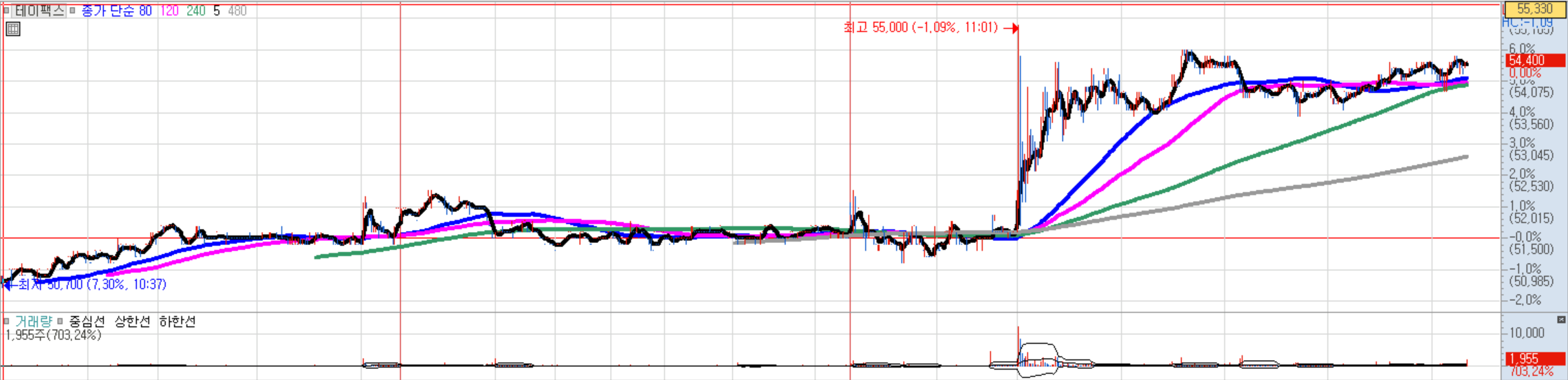 53500원~54900원 분할매수, 종가상 53200원 이탈시 손절.