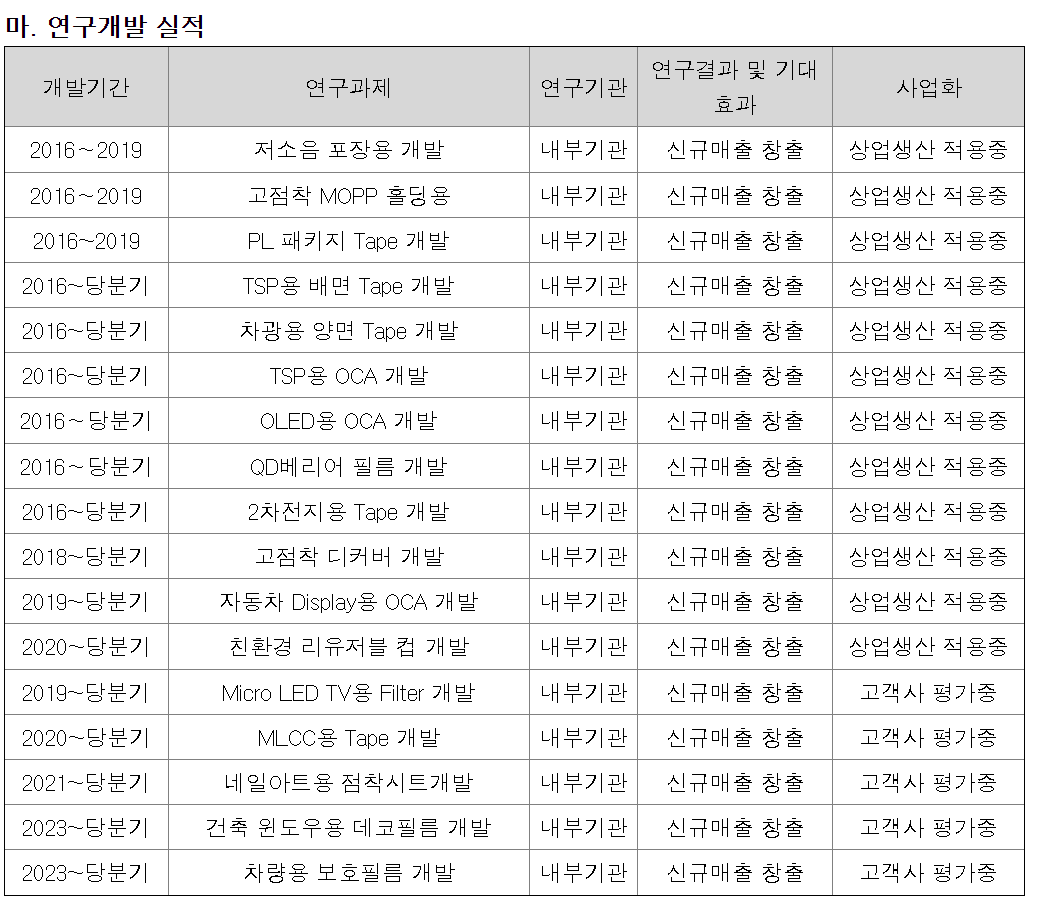 - 2005년 전자소재용 테이프 시장 진출