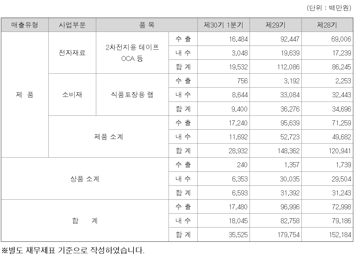 특히 2차전지용 테이프의 매출이 줄어들고 있다는 점이 뼈아프다.