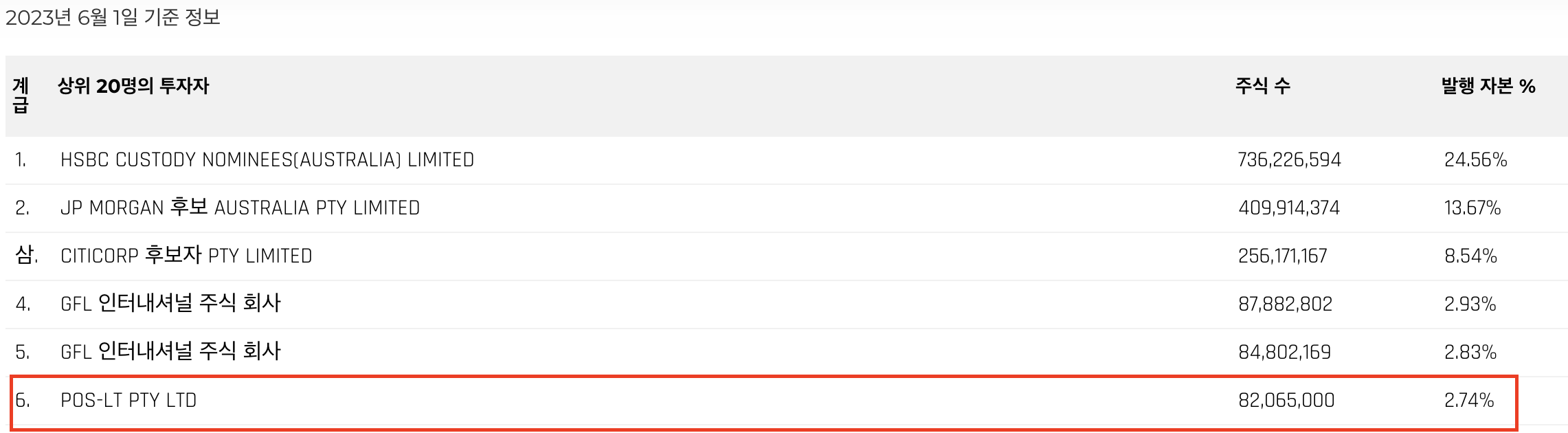 포스코홀딩스는 호주에 있는 필바라 미네랄(Pilbara mineral)의 지분 2.74%을 취득합니다.