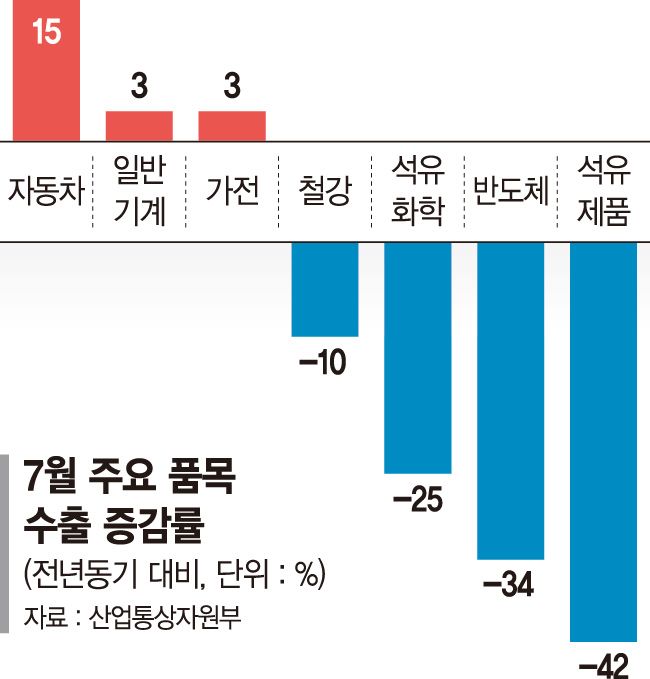 반도체 수출 34%나 줄었다... 자동차는 13개월 연속 증가