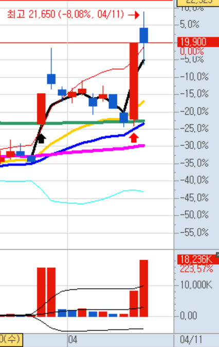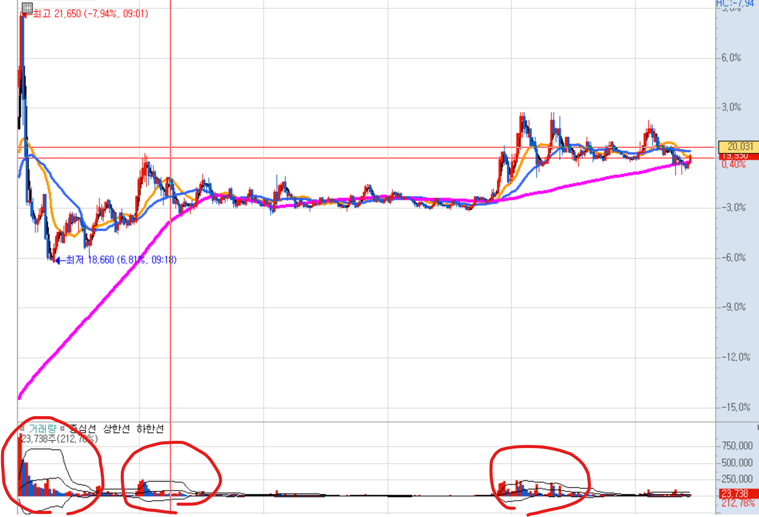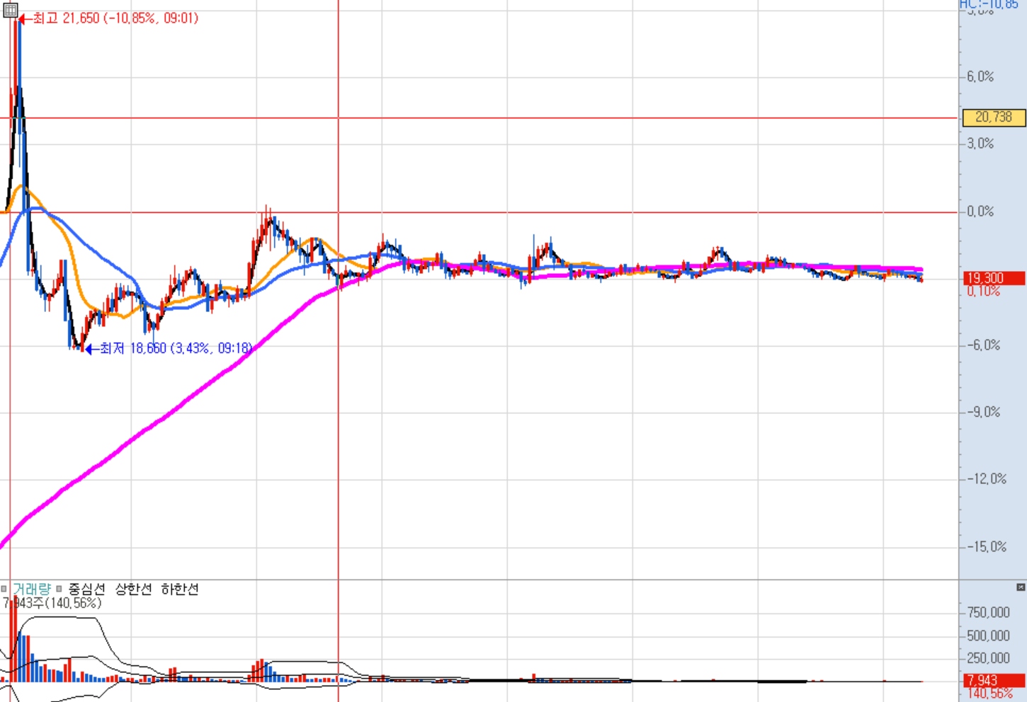 처음 종목 선정이유에서 지레짐작했던 20650원 언저리, 더 나아가서 시초가인 21650원까지 상승할거라고 막연히 생각하고 있었다.