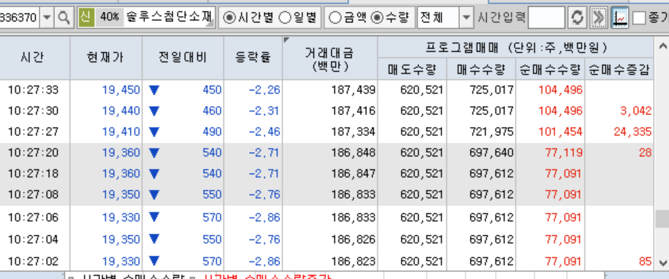 8) 12시 55분 하락 시작되는듯하여 전량매도