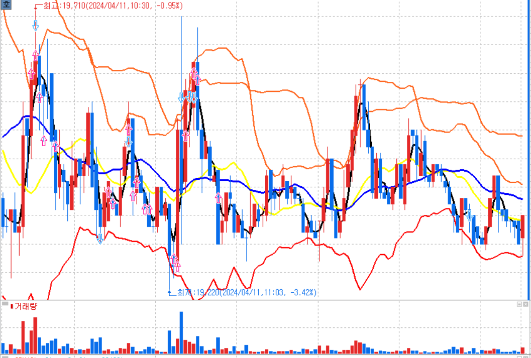 그리고 4월 11일 오전 10시30분쯤 거래를 시작했을 때 거래 상위에 있는 것을 확인하였기 때문에 차트를 먼저 확인했다.