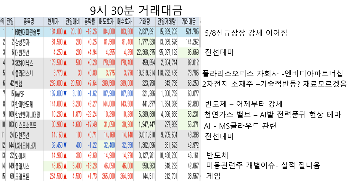 | 2024년 5월 8일 오전장 거래대금 상위종목 분석 (0) | 2024.05.08 |