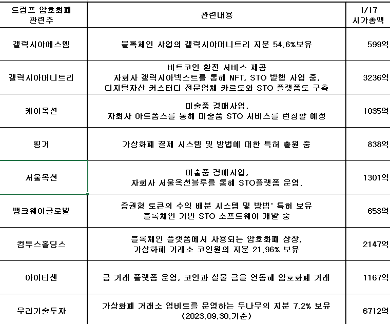 도널드 트럼프 미국 대통령 당선인이 암호화폐를 정책 우선순위에 두고 행정부 내에서 업계 관계자들이 의견을 낼 수 있도록 하는 행정명령을 발표할 계획이라고 블룸버그 통신이 16일(현지시간) 보도했다.